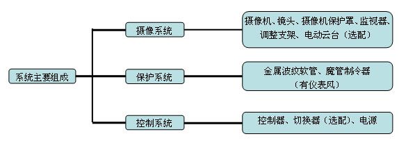示例說明:電動云臺式常溫普通型彩色工業(yè)電視監(jiān)視系統(tǒng)
